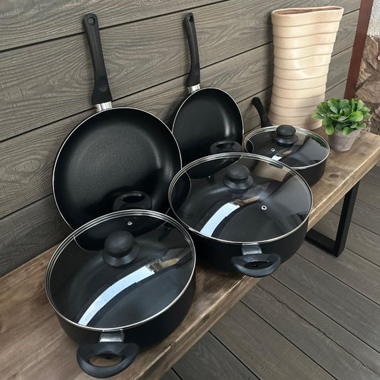 Juego de Ollas y Sartenes Antiadherentes - Juego de 2 Sartenes y 3 Ollas